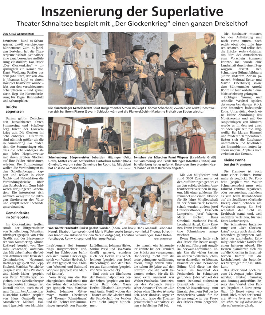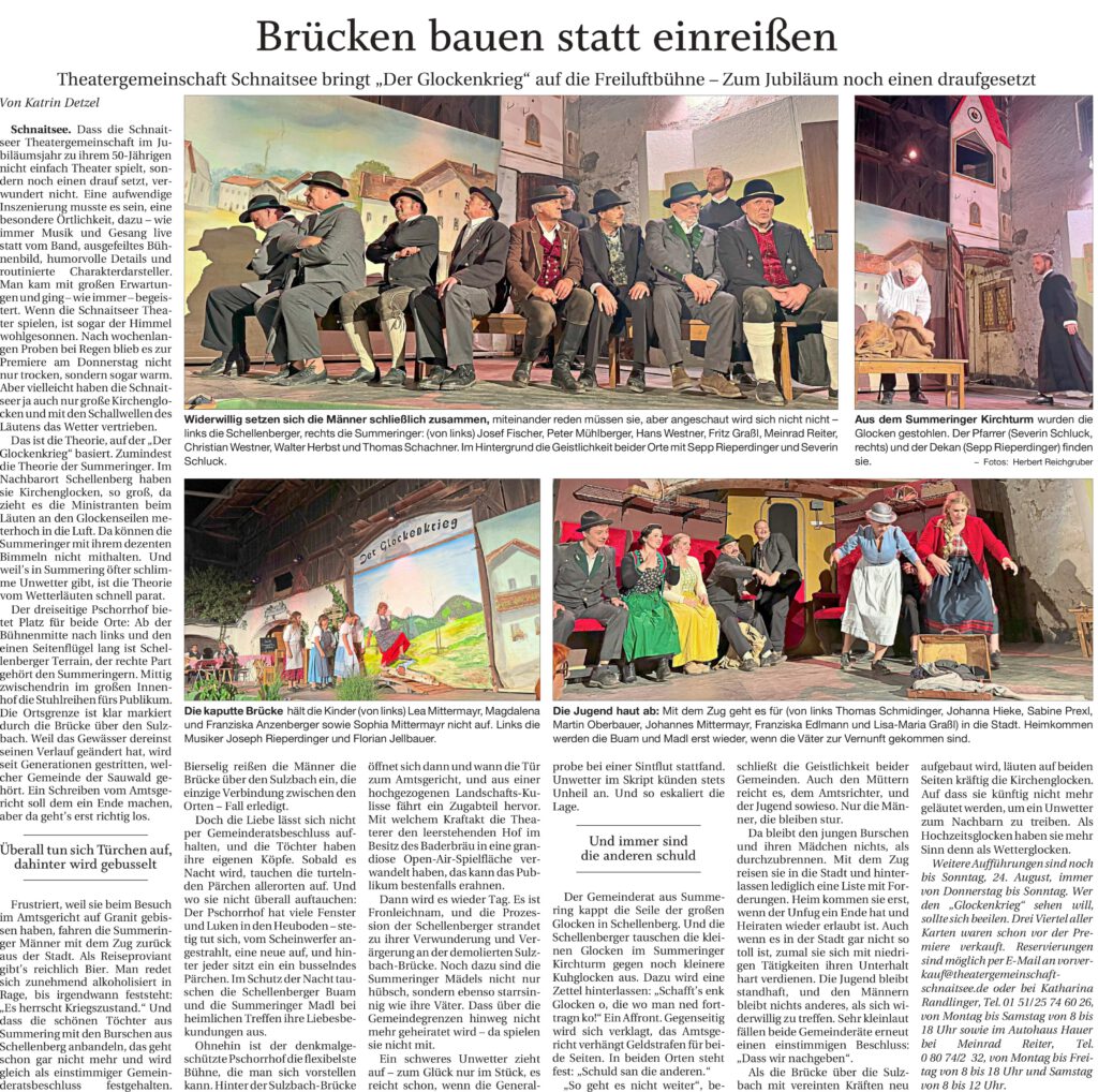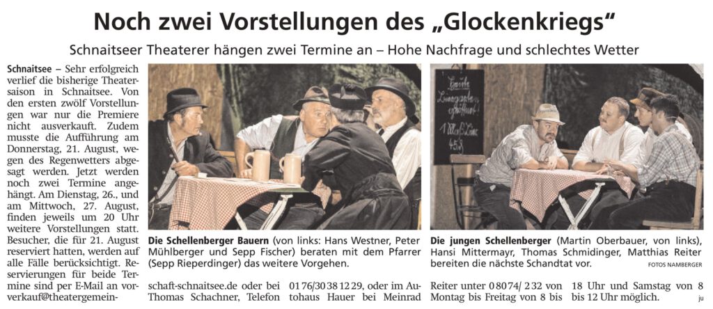 Im Ausblick in das Sommerhalbjahr nannte Schachner die Musiknacht „Aufgspuit in Schnoatsee“ am 8. Juni, das Feuerwehrfest in Waldhausen am 7. Juli und das „Spiel ohne Grenzen“ mit Waldfest am 13. Juli. Auch bei der Gedenkmesse auf der Kampenwand wird die Theatergemeinschaft teilnehmen.